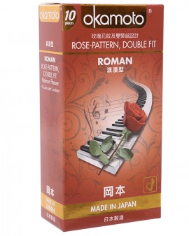 Bao cao su giúp ngăn ngừa tối thiểu khả năng mang thai ngoài ý muốn, hạn chế việc lây nhiễm. Okamoto với thành phần an toàn, sản xuất khắt khe dành cho sản phẩm nhạy cảm. Hộp 10 cái bao cao su Okamoto Roman 52mm vân hoa hồng, tạo cảm giác kích thích cao